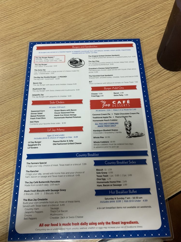 The Jay Cafe Menu